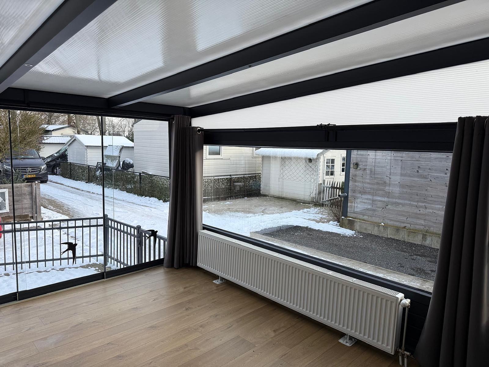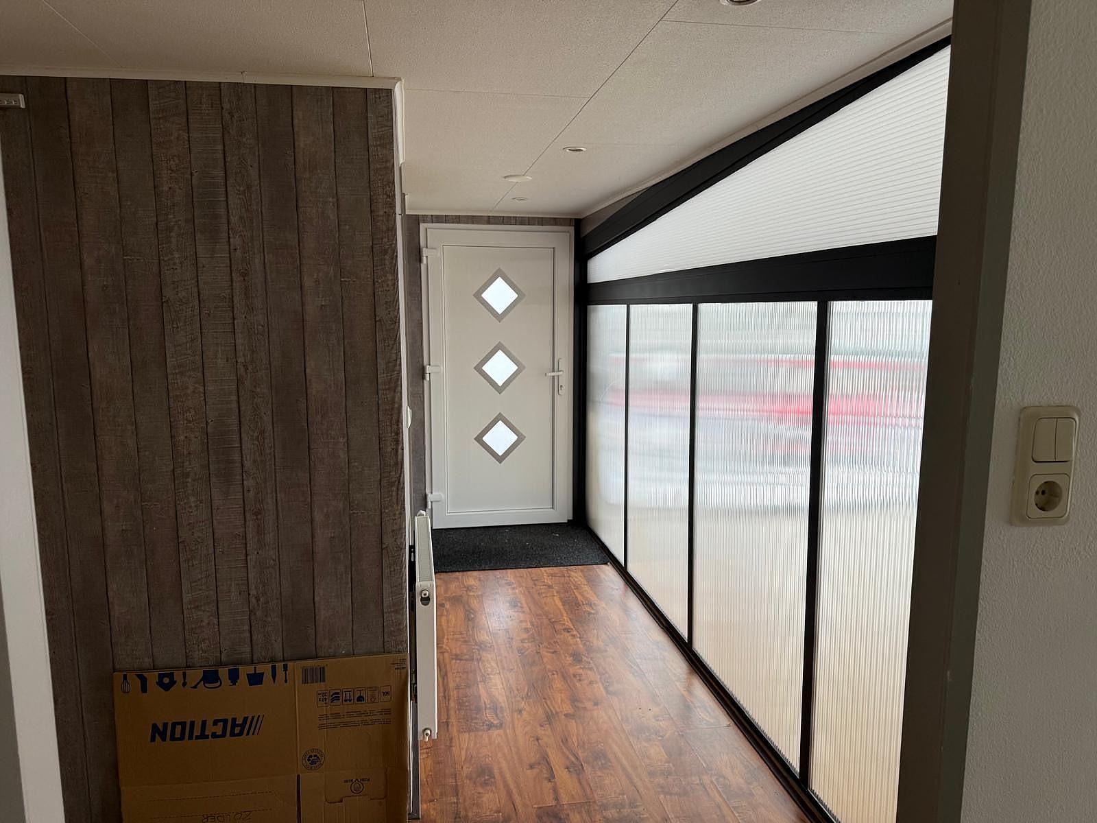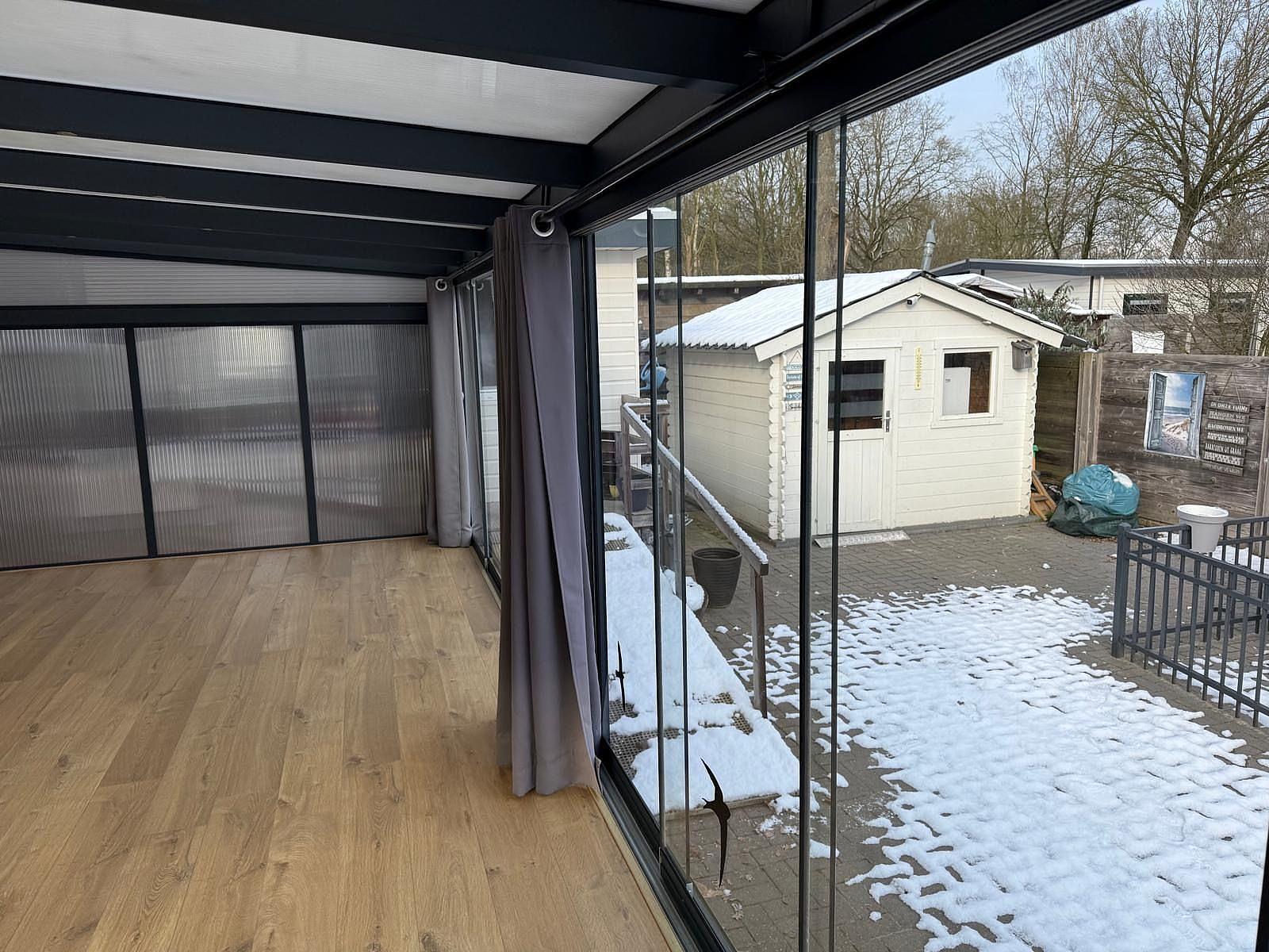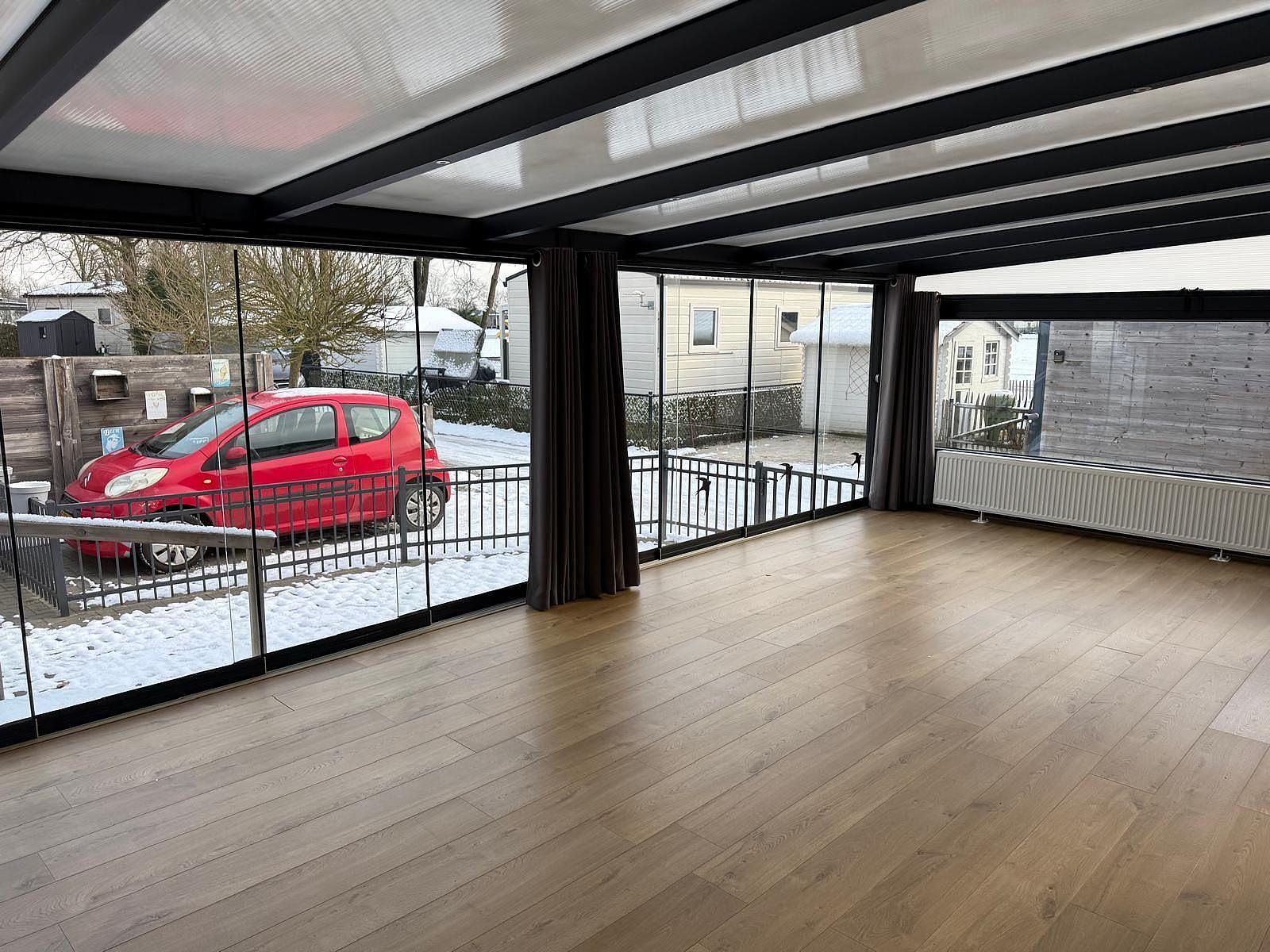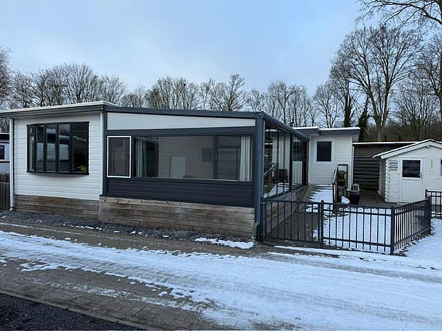 deze L-chalet is ±88m2 met een grote overkapping eraan.