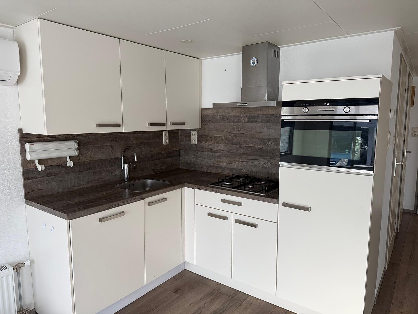 de keuken heeft een 4 pits gasfornuis , koelkast , combi oven magnetron en een vaatwasser.