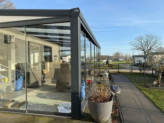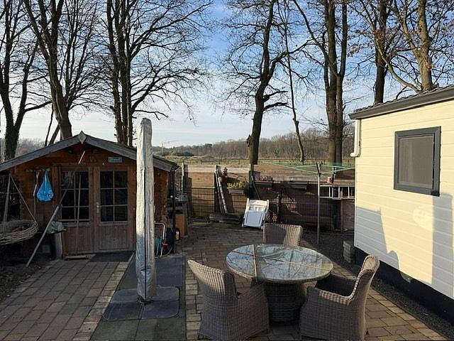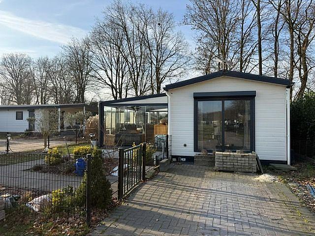 deze chalet heeft een oppervlakte van 54m2 met nog een veranda eraan.