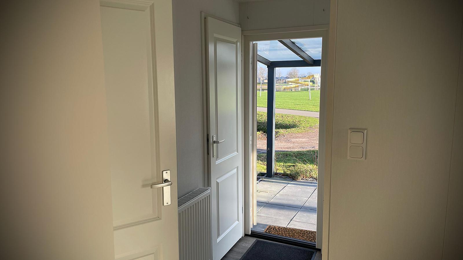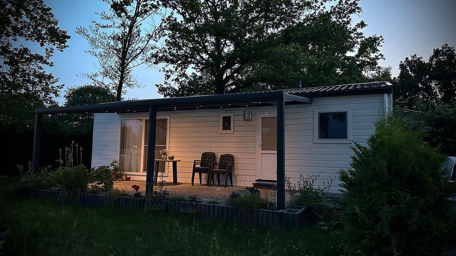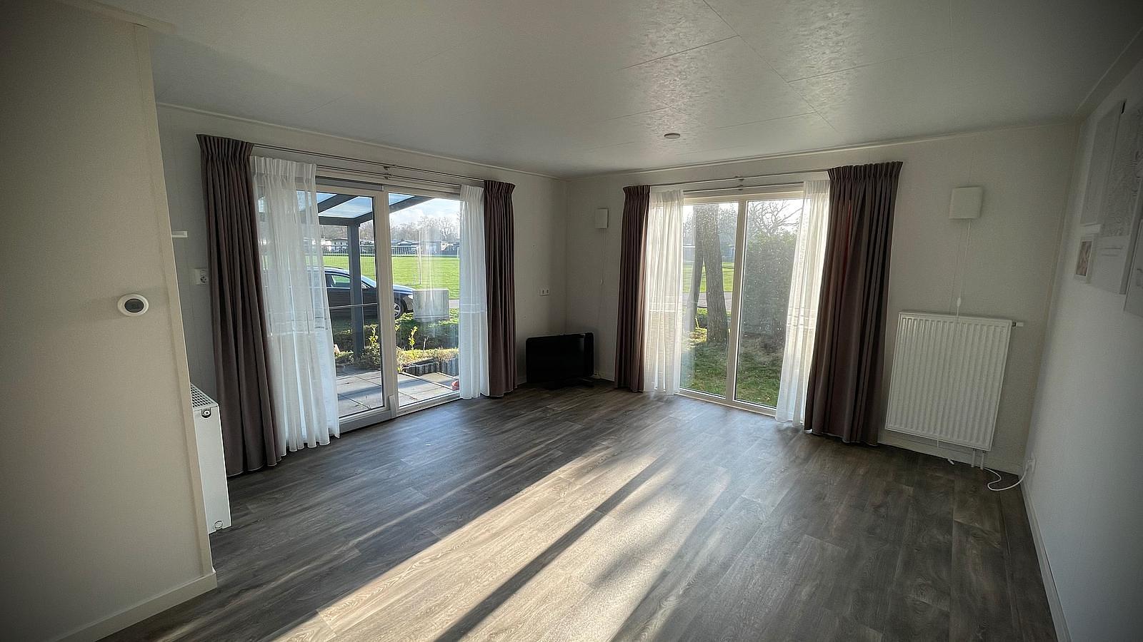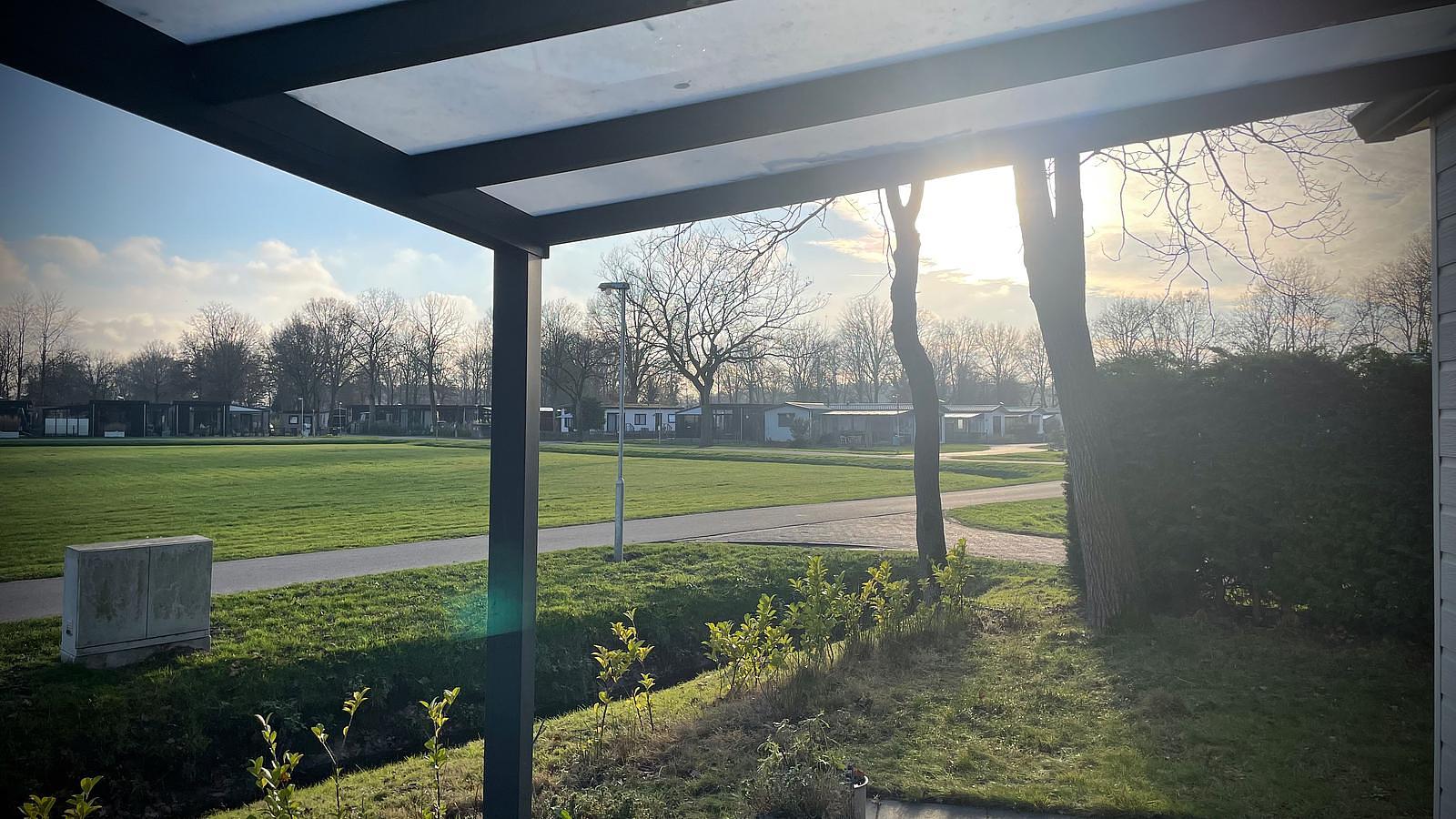 Deze chalet staat midden op park Heezerenbosch uitkijkend op het grote veld en zwemvijver.