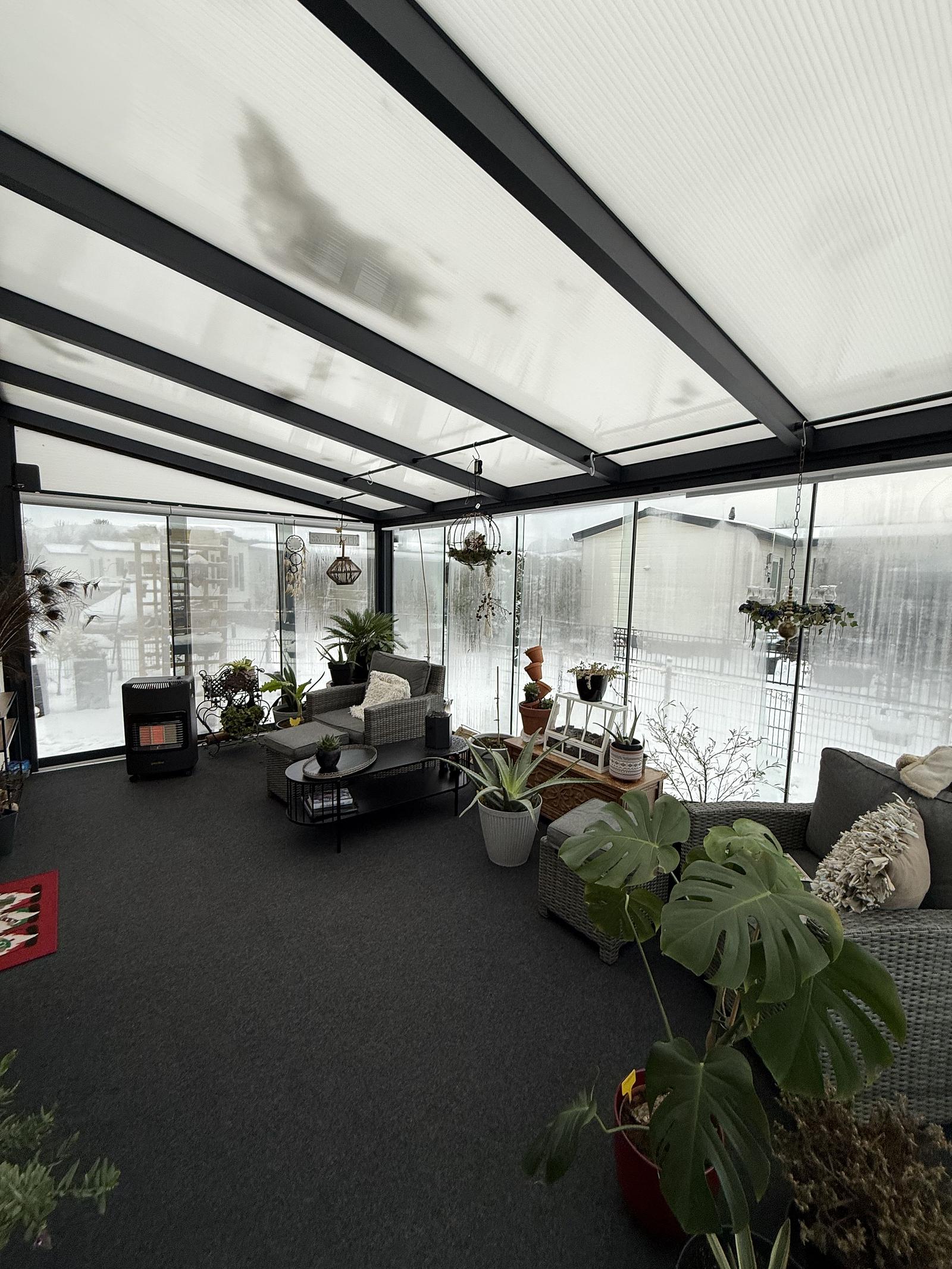 Dit ruime enkel chalet van 2019 is extra goed geïsoleerd, en voorzien van een ruime serre.